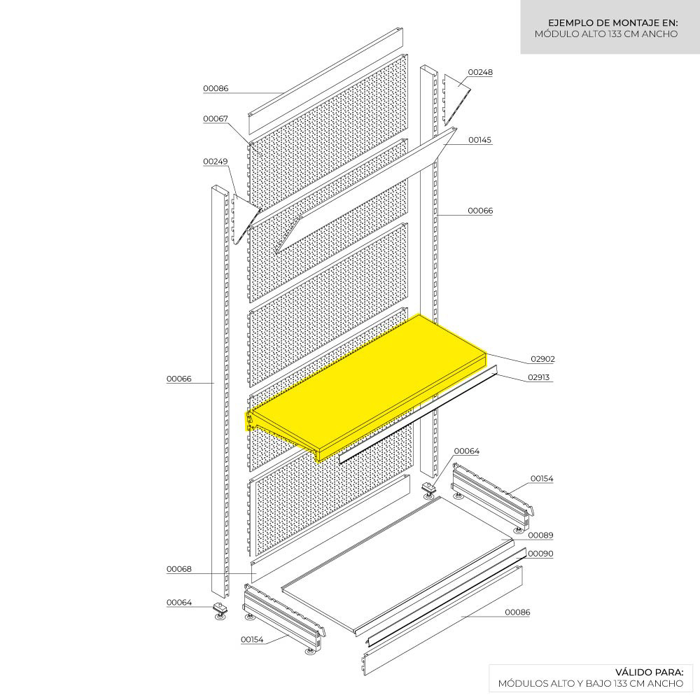 BALDA DE MADERA 1330x470x60mm COLOR HAYA C/SOPORTES BASICS