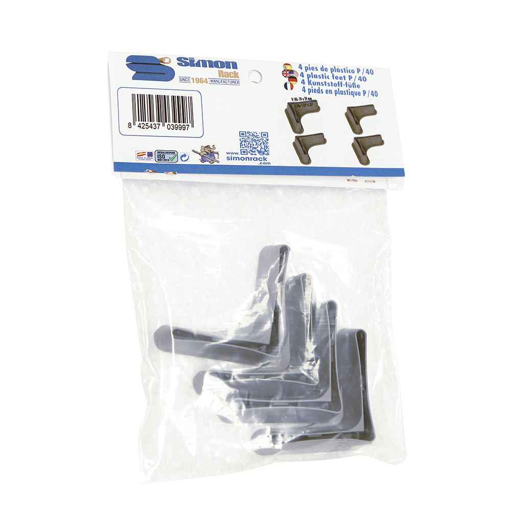 BOLSA 4 PIES P/40 GRIS. FÁCILMENTE INSERTABLES EN PERFILES P/40. NO RAYAN NI DETERIORAN EL SUELO.. SIMON RACK