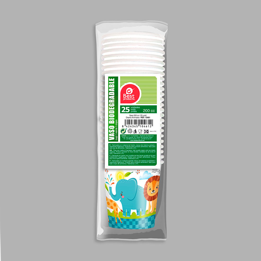 BOLSA CON 25 VASOS DE CARTON DISEÑO ANIMALES 200ccDisponibilidad: 170 disponibles