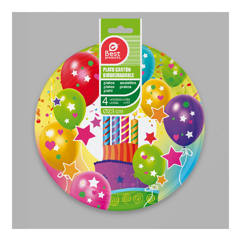 BOLSA CON 4 PLATOS DE CARTON DISEÑO GLOBOS Y VELAS Ø23cmDisponibilidad: 58 disponibles