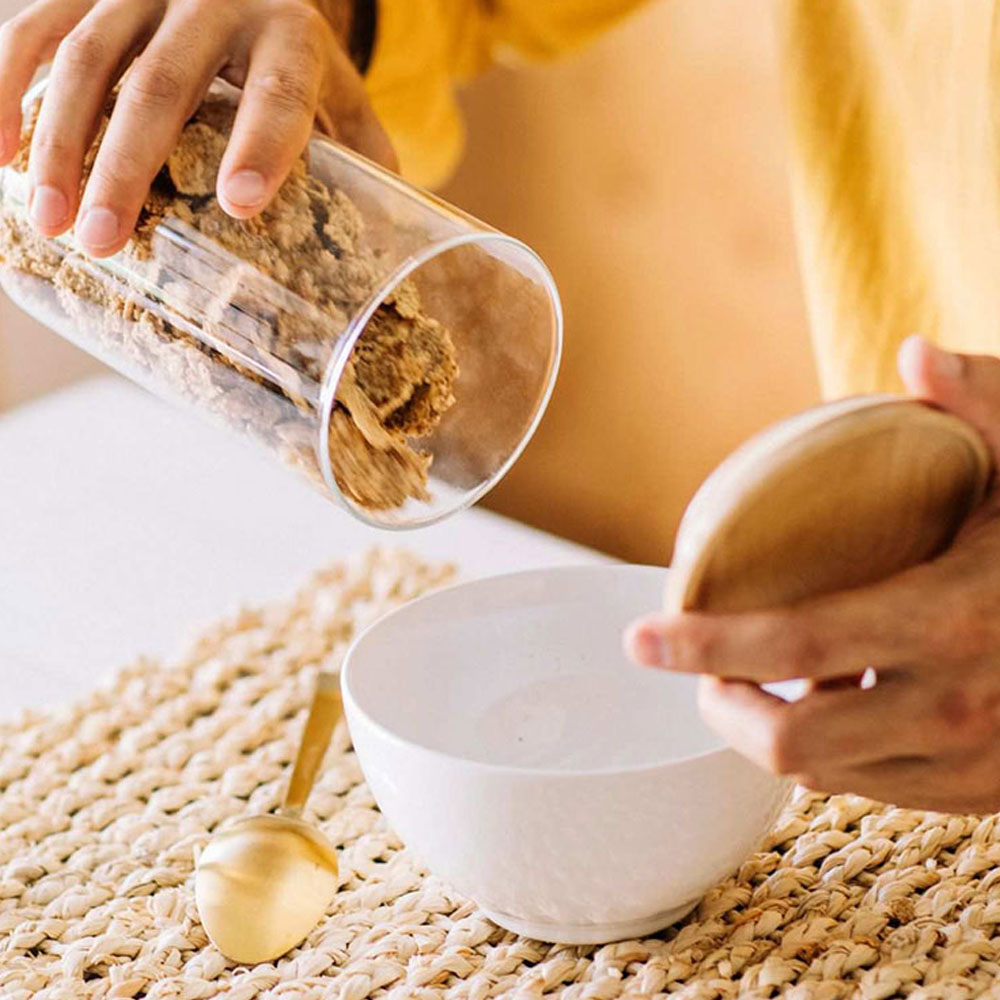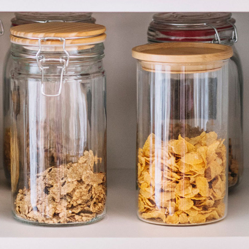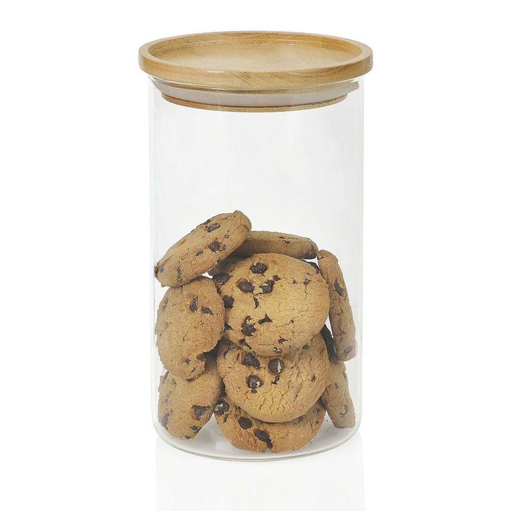 BOTE DE VIDRIO/MADERA Ø9,5×17,5cm (diámetro/alto) CC16204 ANDREA HOUSE. BOTE DE 1,200ml DE CRISTAL TRANSPARENTE
