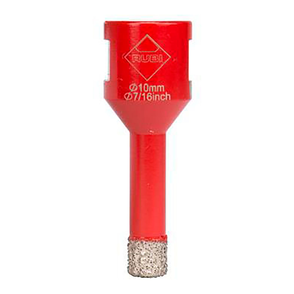BROCA DRYGRES Ø10mm. 5990 RUBI. RECOMENDABLE PARA LA PERFORACIÓN DE TODO TIPO DE BALDOSA CERÁMICA, EN ESPECIAL LAS DE GRES PORCELÁNICO, Y OTROS MATERIALES DE REVESTIMIENTO COMO EL MÁRMOL Y EL GRANITO. REALIZAR UN PEQUEÑO MOVIMIENTO ORBITAL CONSTANTEMENTE MIENTRAS SE PERFORA Y PERFORAR SOLO LA CERÁMICA Y CONTINUAR PERFORANDO EL SOPORTE CON UNA BROCA NORMAL PARA ESE USO.SON PERFECTAS PARA LA COLOCACIÓN DE ACCESORIOS DE BAÑO O CUALQUIER TIPO DE ACCESORIO DE DECORACIÓN SOBRE SUPERFICIES CERÁMICAS. SON DE CORTE SECO Y PUEDEN SER UTILIZADAS, GRACIAS A SU CONEXIÓN CON ROSCA M14, DIRECTAMENTE CON UNA AMOLADORA.