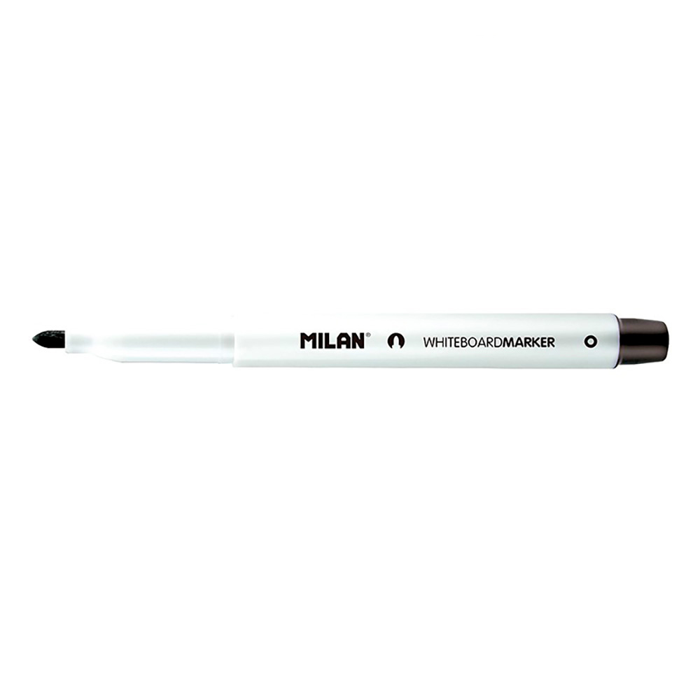 CAJA DE 12 ROTULADORES NEGROS PARA PIZARRA BLANCA MILAN. ROTULADORES PARA PIZARRA BLANCA, COLOR NEGRO. BORRABLE EN SECO. TINTA A BASE DE ALCOHOL. PUNTA REDONDA Ø3,7mm. RECOMENDAMOS TAPAR DESPUÉS DE USAR Y ALMACENAR EN POSICIÓN HORIZONTAL. ROTULADORES DE RECAMBIO PARA EL BORRADOR MAGNÉTICO REF: 16589122
