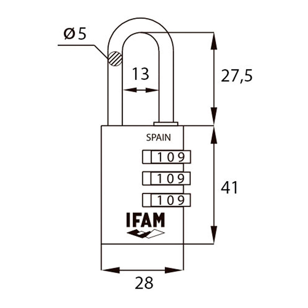 CANDADO COL COMBI30 AZUL 30mm. ARCO Ø5mm. CON COMBINACIÓN. IFAMCANDADO COL COMBI30 AZUL 30mm. ARCO Ø5mm. CON COMBINACIÓN. IFAM