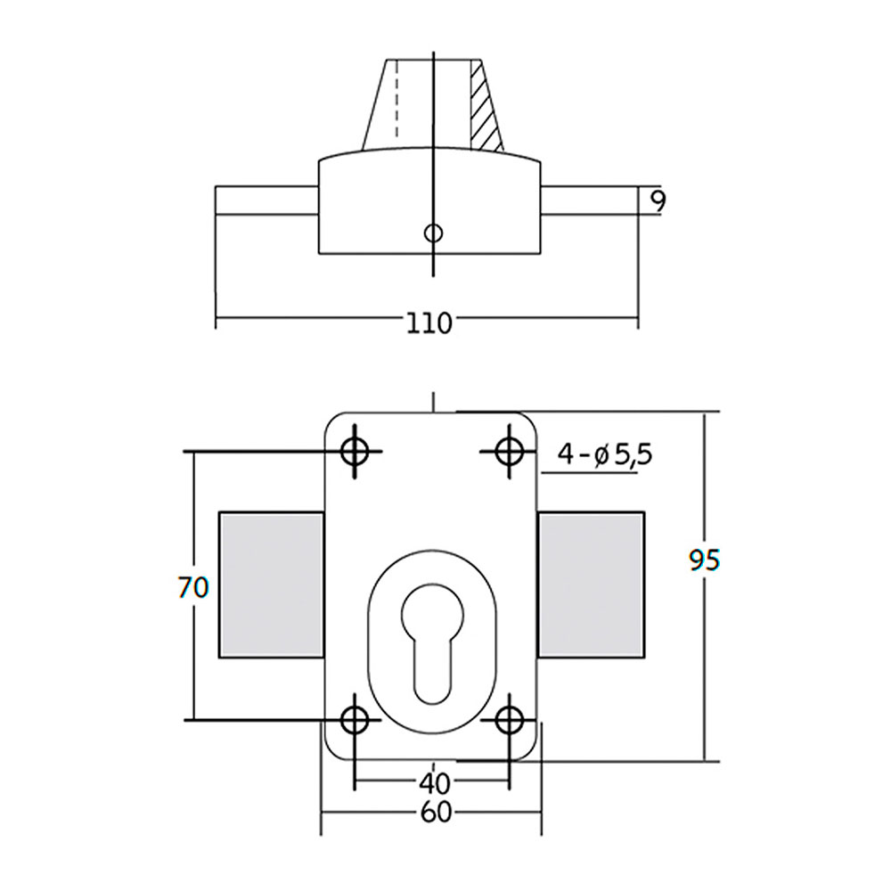 CERROJO X5. ACABADO GRIS OSCURO. CUERPO Y CERRADERO FABRICADOS EN ACERO. PALANCA FABRICADA EN ACERO CROMADO, ESPESOR DE 9mm. CIERRE CON 2 VUELTAS, NO INCLUYE CILINDRO. APTO PARA PUERTAS DE APERTURA IZQUIERDA O DERECHA. IFAM
