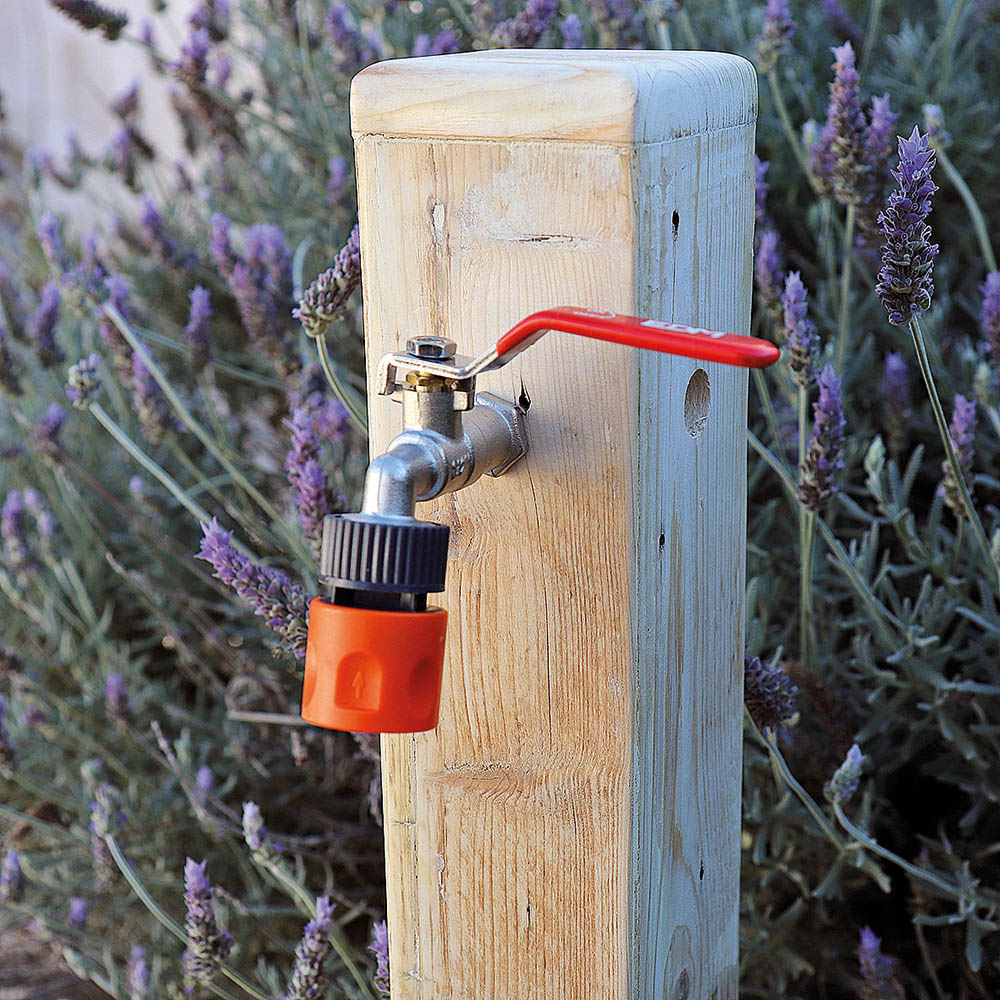 CONECTOR RAPIDO ROSCADO HEMBRA 26,5mm G3/4″ COLOR: GRIS/NARANJA. MATERIAL: POLIPROPILENO. PARA GRIFOS CON ROSCA.