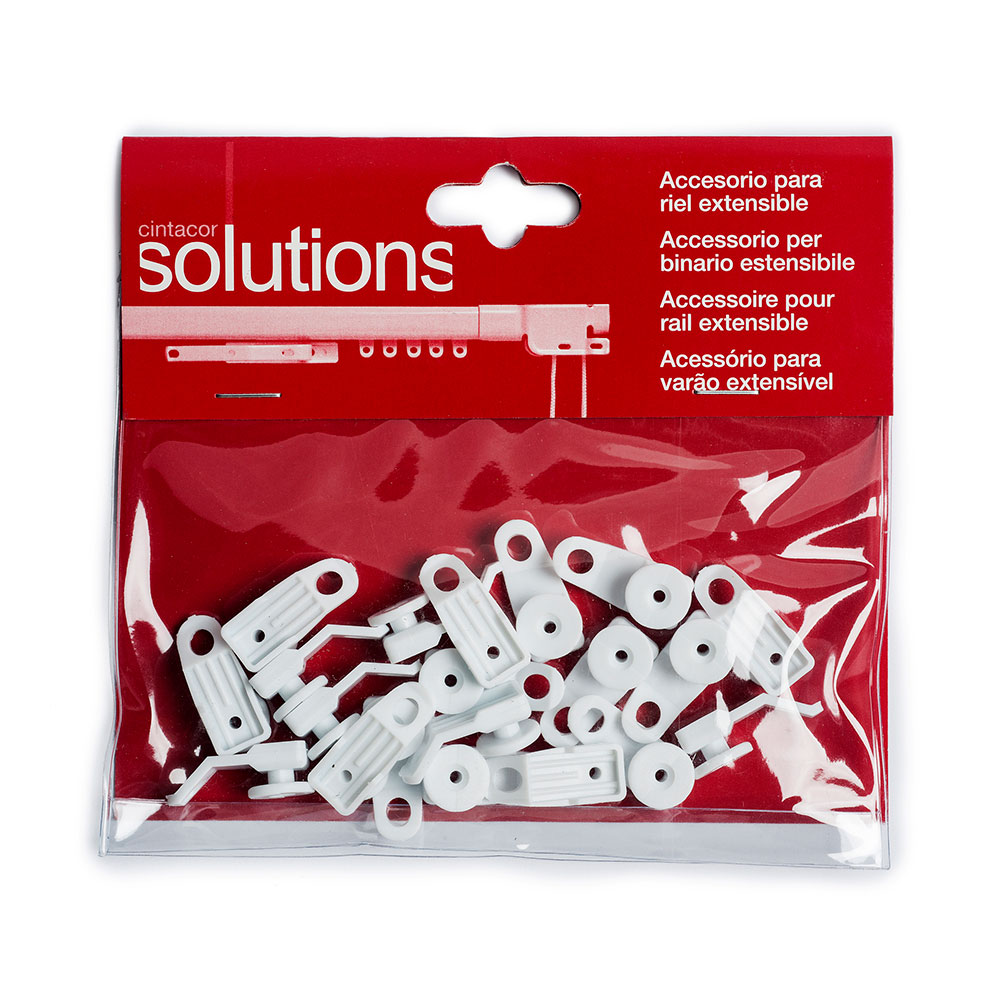 CORREDERAS PARA COLGAR CORTINAS EN RIEL DE COLOR BLANCO. EL PRECIO INCLUYE 20 UNIDADES.