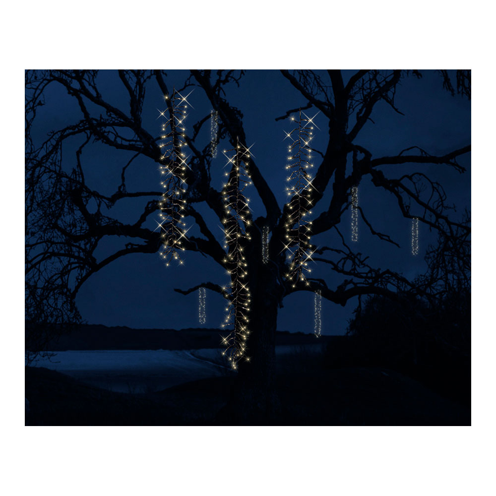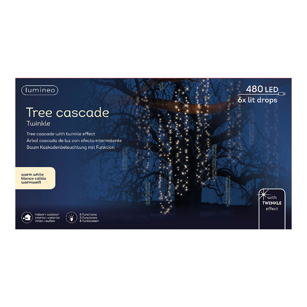 CORTINA CASCADA IDEAL PARA ÁRBOLES CON 8 FUNCIONES 200cm 480 LEDS. FUNCIÓN PARPADEO, IP44, EXTERIOR, LUZ CÁLIDA, CABLE 10m.