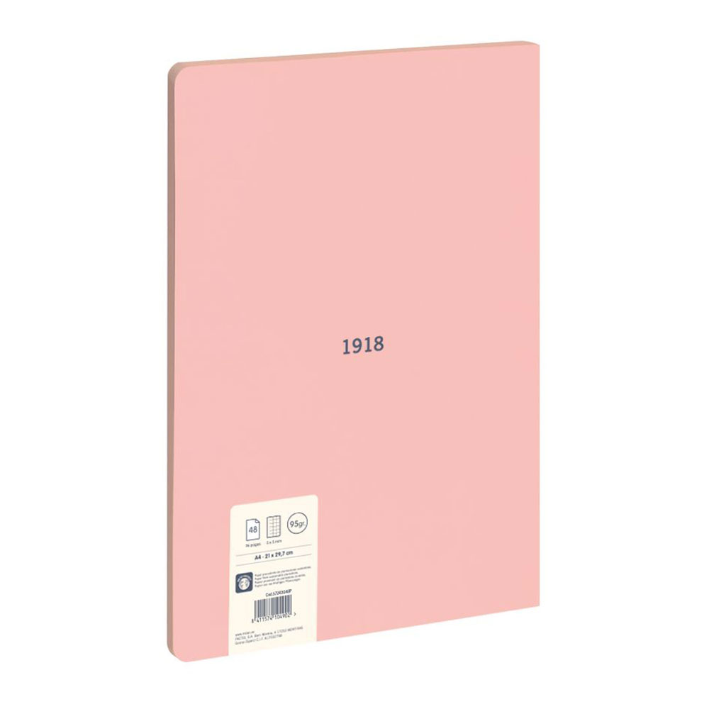 CUADERNO A4 ENCOLADA (SIN GRAPAS) Y TAPA FLEXIBLE, COLOR ROSA. 48 HOJAS DE PAPEL CUADRICULADO (5x5mm). PAPEL DE 95 GR/M² DE ALTA CALIDAD, MICROPERFORADO. COLECCIÓN 430 SINCE 1918, FABRICADAS EN ESPAÑA DESDE 1918.