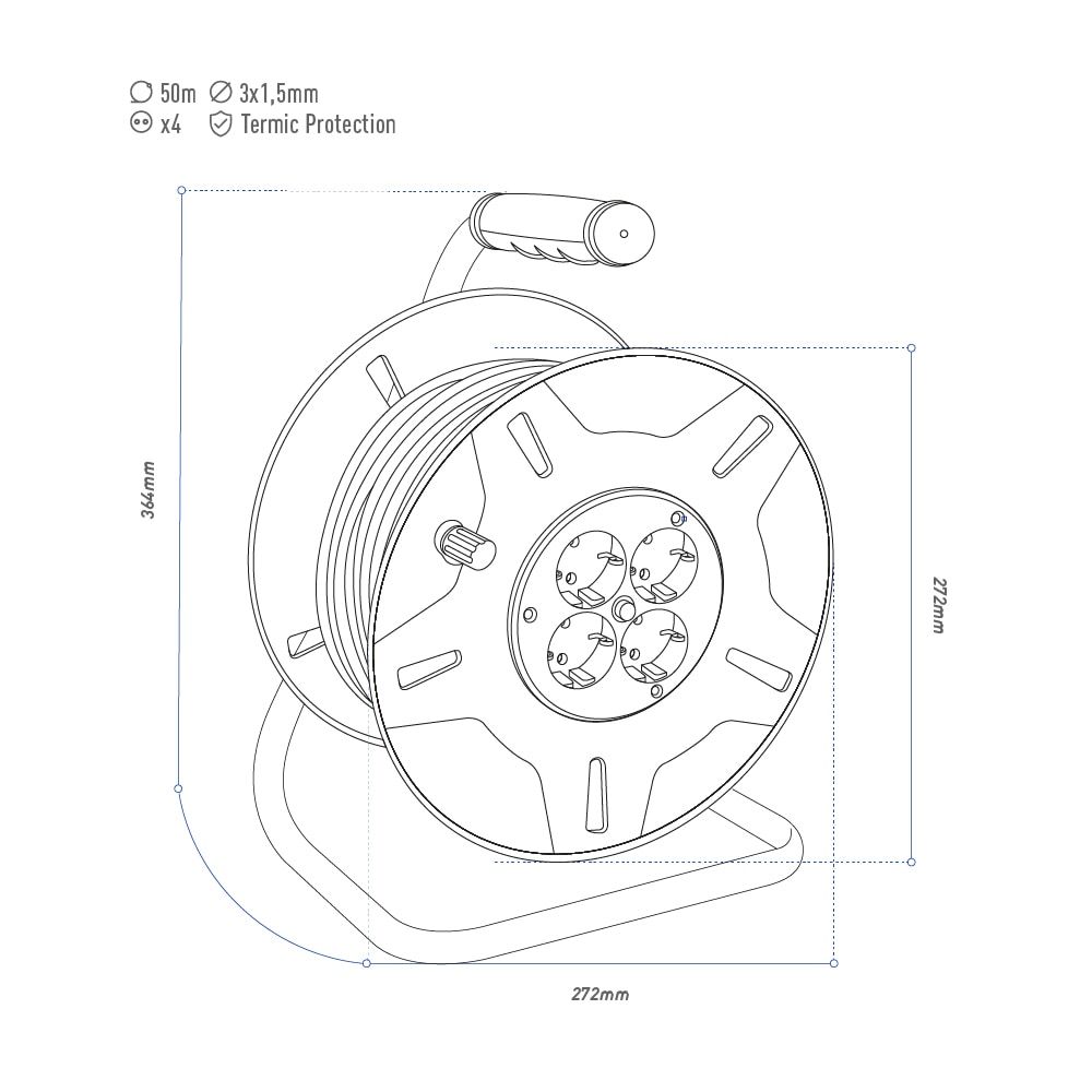 ENROLLACABLES CON PROTECTOR TERMICO 3×1,5mm 50m 4 TOMAS EDMDisponibilidad: 1000 disponibles