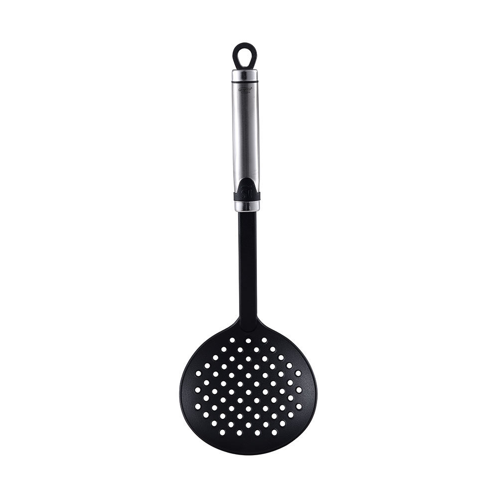ESPUMADERA 35.5×11.5cm EXPERT SG7332 SAN IGNACIO. ESPUMADERA DE COCINA PROFESIONAL. ESTÁ FABRICADA CON UN ACABADO IDEAL PARA COCINAS PROFESIONALES O AFICIONADOS A LA COCINA. ES MUY FÁCIL DE MANIPULAR Y OFRECE UN ACABADO ELEGANTE, RESISTENTE Y PRÁCTICO. MÁXIMA COMODIDAD. SUS PRECISAS MEDIDAS DE 35.5×11.5cm HACEN QUE ESTA ESPUMADERA SEA MÁS PRÁCTICO QUE UNA PALETA DE COCINA. SERVIRÁ PARA ESPUMAR BEBIDAS AUN EN ENVASES PROFUNDOS. FABRICACIÓN DE NYLON PBT. NO ES UNA ESPUMADERA SILICONA, SINO QUE SU HERRAMIENTA ESTÁ HECHA DE NYLON NEGRO QUE NO ARAÑA NI RAYA OTRAS SUPERFICIES, SIN IMPORTAR SI EL MATERIAL ES DELICADO. DISEÑO ELEGANTE Y RESISTENTE. SU ASA ESTÁ HECHA CON ACERO INOXIDABLE PULIDO DE ALTA CALIDAD QUE LO HACE MÁS RESISTENTE. TIENE INSERCIONES NEGRAS PARA COMPLEMENTAR EL ESTILO Y DISEÑO ELEGANTE. FÁCIL DE GUARDAR. LA ESPUMADERA INCORPORA UN ANILLO PARA COLGAR AL FINAL DE SU ASA, POR LO QUE SU DISEÑO HACE QUE RESULTE CÓMODO. ESTE PRODUCTO TAMBIÉN RESULTA FÁCIL DE LIMPIAR.