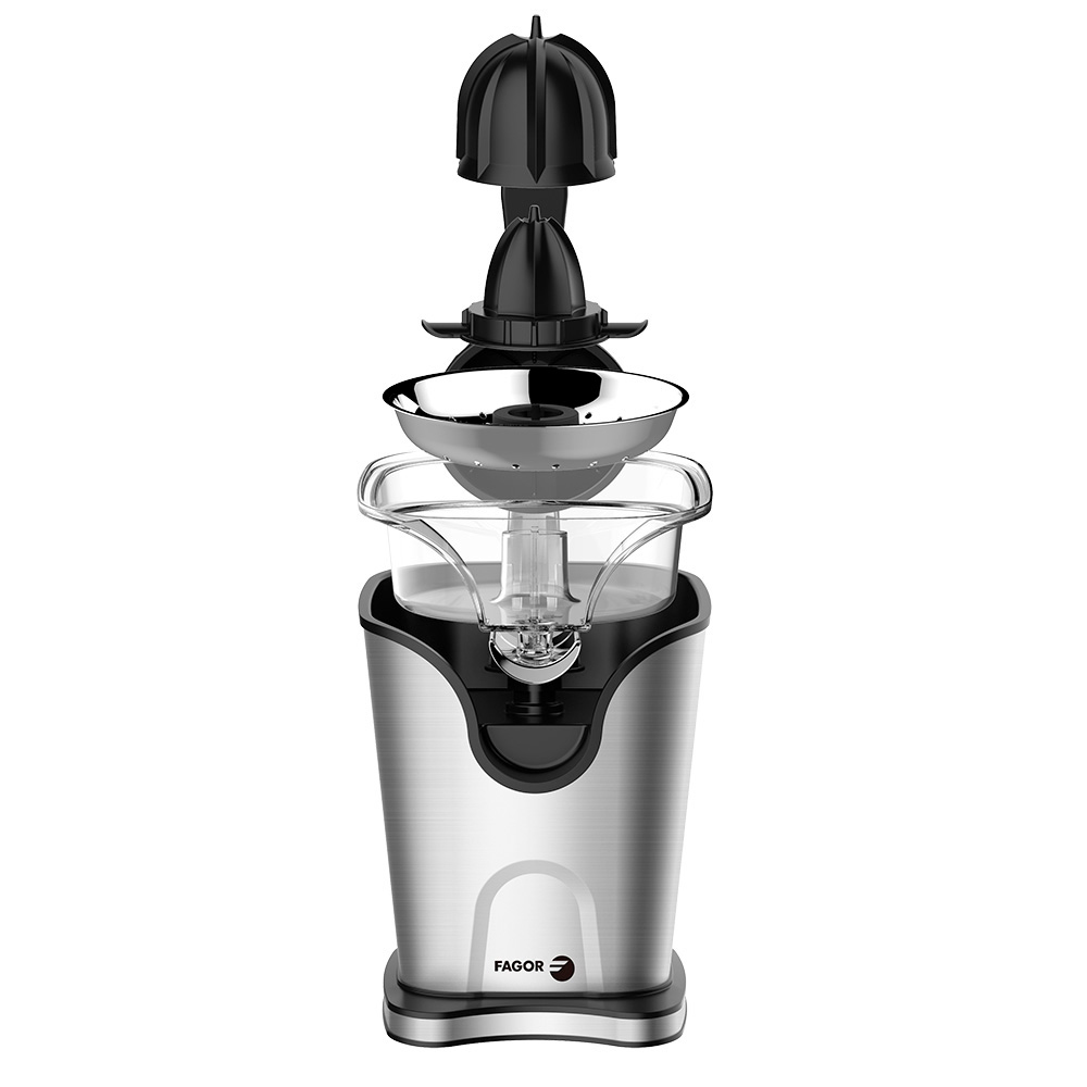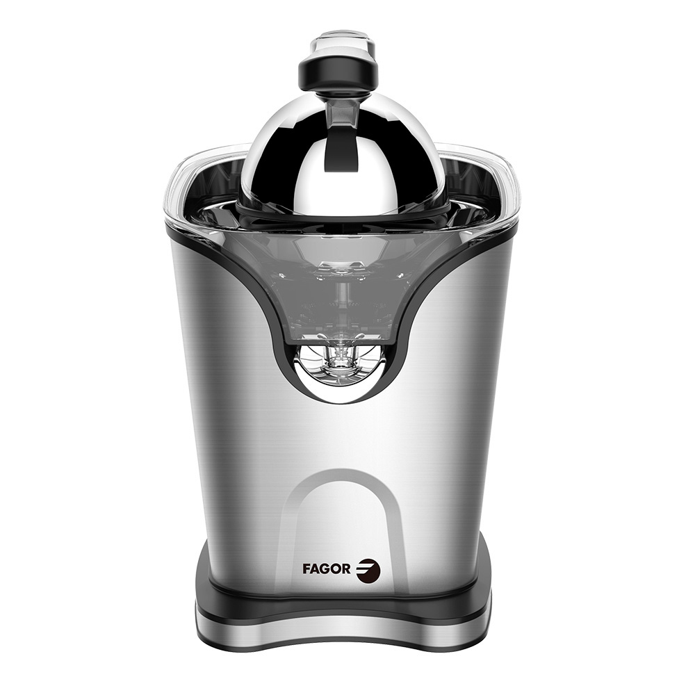 EXPRIMIDOR ELÉCTRICO DE BRAZO 100W FAGOR ACERO INOXIDABLE. BRAZO CON ACABADO SOFT TOUCH. CAÑO DE ACERO INOXIDABLE.FILTRO ANTIPULPA. 2 CONOS PARA FRUTAS PEQUEÑAS Y GRANDES. SISTEMA ANTIGOTEO 16,5x21x27cm (ancho/fondo/alto)