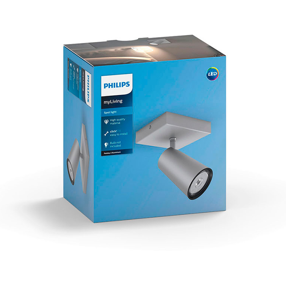 FOCO 1 ELEMENTO MOD. PAISLEY GU10, BOMBILLA NO INCLUIDA, FABRICADO EN METAL, COLOR ALUMINIO, TAMAÑO: 10,2×10,2×9,2cm GRADO DE PROTECCION: IP20. 220-240V PHILIPS