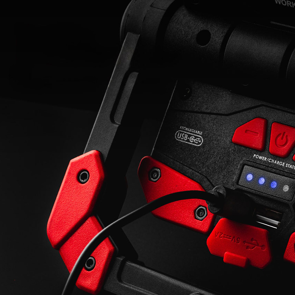 LA OMNI 2K ES LA LUZ DE TRABAJO OMNIDIRECCIONAL DEFINITIVA CON UNA POTENTE SALIDA DUAL C O B DE 2.000 LÚMENES CON FUNCIÓN DE PELIGRO ROJO. EL OMNI TIENE ASAS MAGNÉTICAS PARA PROPORCIONAR UN TRANSPORTE CONVENIENTE, UN ACCESORIO MAGNÉTICO O UNA BASE RESISTENTE PARA LA LUZ MANOS LIBRES. CADA PANEL C O B Y MANGO MAGNÉTICO GIRA PARA DAR LUZ DONDE SEA QUE LA NECESITE, Y LOS CONTROLES DE ATENUACIÓN LE BRINDAN LA CANTIDAD CORRECTA DE LUZ. TOTALMENTE RECARGABLE, EL OMNI 2K TAMBIÉN TIENE UN BANCO DE ENERGÍA PARA CARGAR SUS DISPOSITIVOS ALIMENTADOS POR USB. IPX4