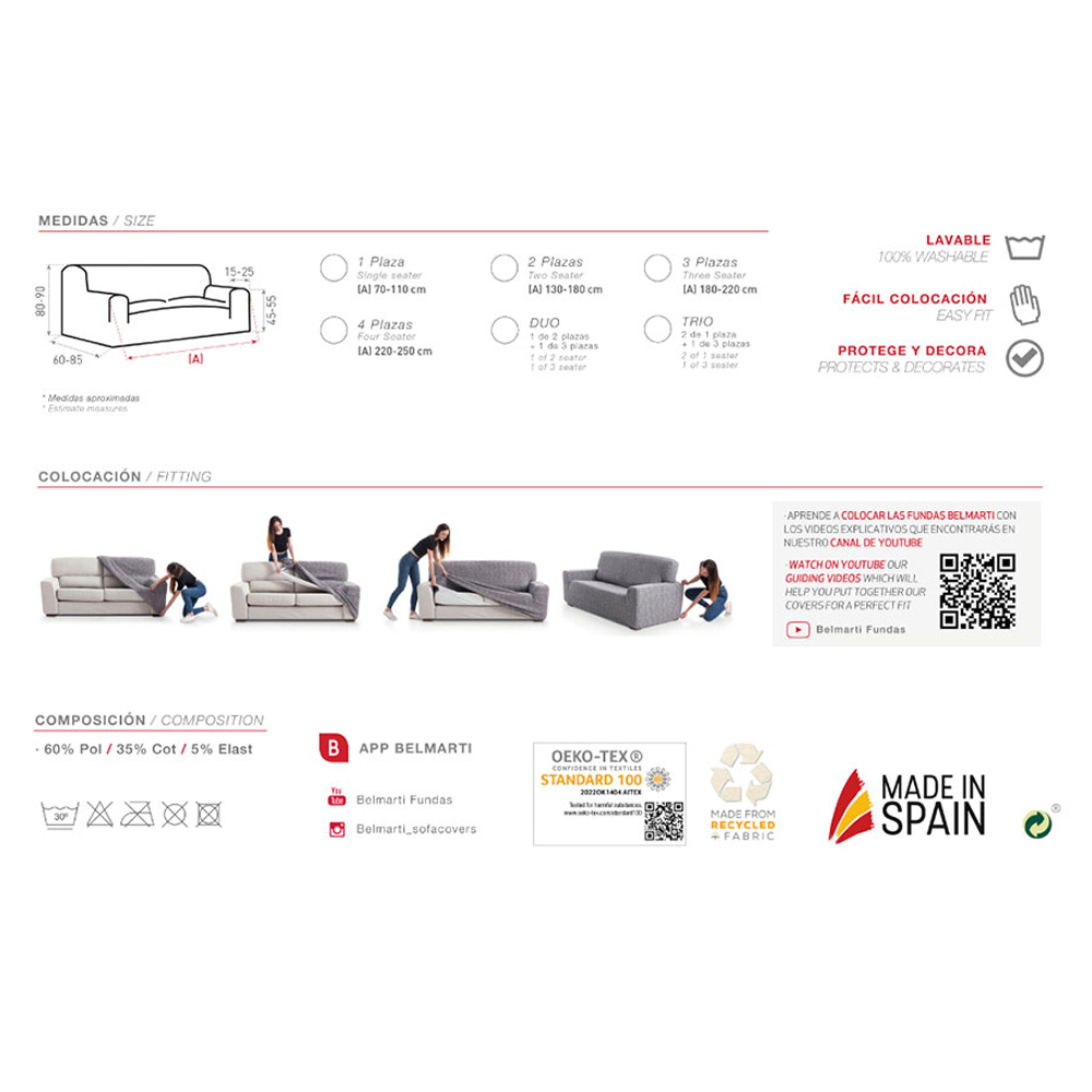 FUNDA TEIDE MARFIL ELÁSTICA PARA SOFA 3 PLAZAS MEDIDAS: 180-220×60-85×80-90cm 002TEFM BELMARTI