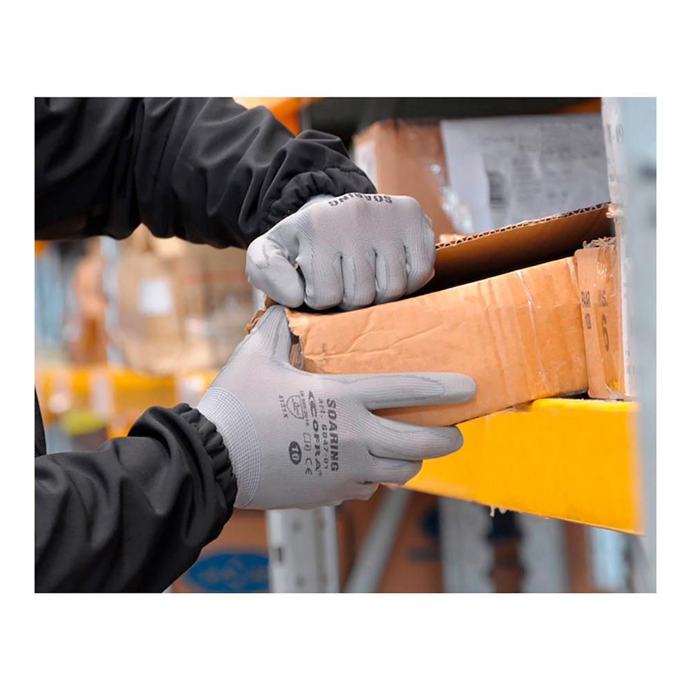 GUANTE POLIURETANO SOARING TALLA 8 M COFRA. POLIURETANO. NORMAS: EN420, EN 388, CAT II. OPTIMA DESTREZA, OPTIMA RESISTENCIA, TRANSPIRABLE, VERSATIL Y LIGERO. COLOR GRIS. PROTECCION GENERAL, PROTECCION MECANICA LIGERA. USO EN AGRICULTURA, ALMACENAMIENTO, CONSTRUCCION, EMBALAJE, ENSAMBLAJE, MANTENIMIENTO Y MECANCICA. LIGERO Y TRANSPIRABLE