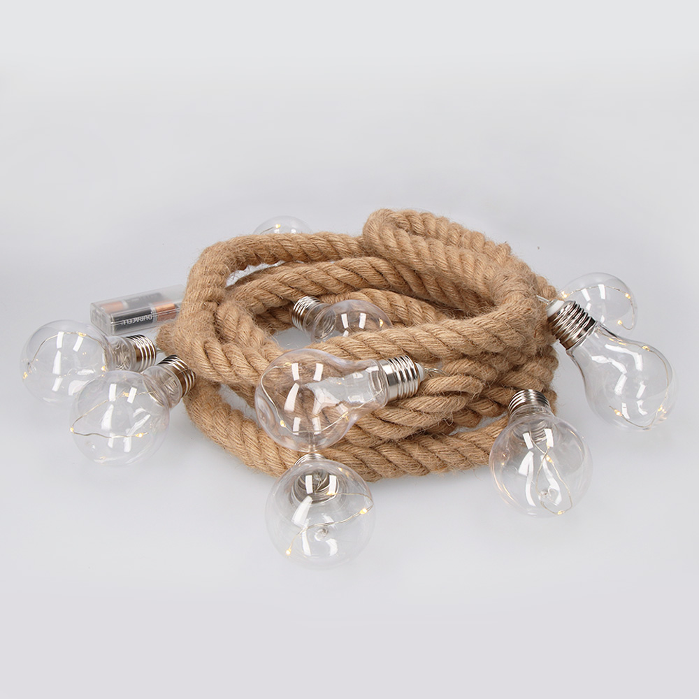 GUIRNALDA A PILAS FIJA 10 BOMBILLAS CON 3 LEDS CADA BOMBILLA. CUERDA DE YUTE LUZ BLANCO CALIDO 3,15m