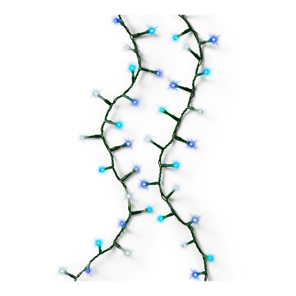 GUIRNALDA LED COMPACT PARPADEANTE COLORES BLANCO, AZUL Y TURQUESA 750 LEDS CABLE VERDE 21m