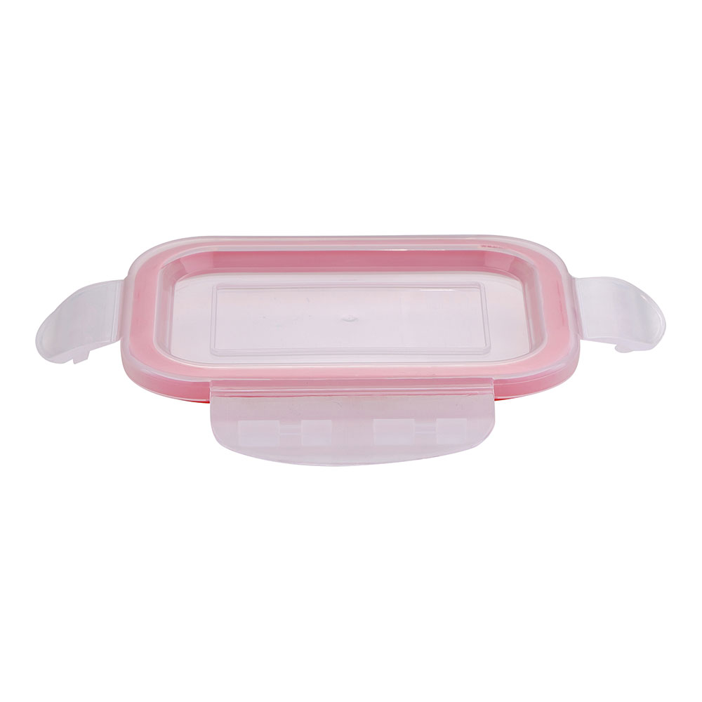 CAPACIDAD: 450 ml FABRICADO EN VIDRIO DE BOROSILICATO. TAPA DE PLÁSTICO PP CON LOS BORDES EN ROJO.