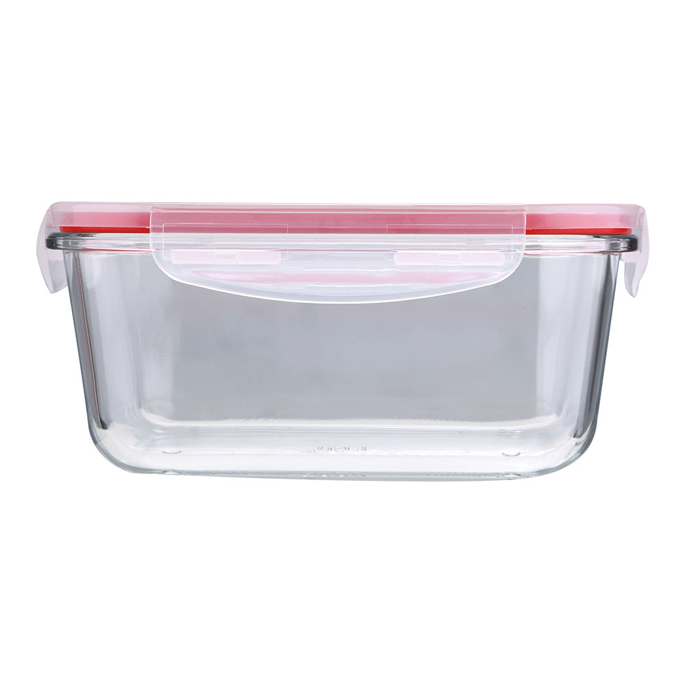 CAPACIDAD: 850 ml FABRICADO EN VIDRIO DE BOROSILICATO. TAPA DE PLÁSTICO PP CON LOS BORDES EN ROJO.