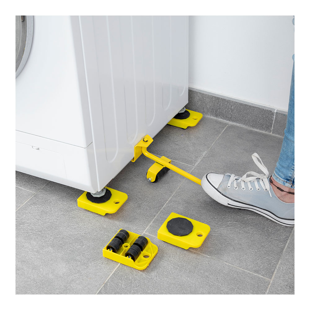 HERRAMIENTA DE ELEVACION Y TRANSPORTE V0103237 INNOVAGOODS. UNA VERSÁTIL Y RESISTENTE HERRAMIENTA QUE PERMITE MOVER CON FACILIDAD OBJETOS PESADOS EN EL ENTORNO DOMÉSTICO, COMO MUEBLES, CAJAS PESADAS, ELECTRODOMÉSTICOS, ETC. GRACIAS A SU ORIGINAL E INNOVADOR DISEÑO MULTIFUNCIÓN, PERMITE LEVANTAR, COLOCAR, DESLIZAR, AJUSTAR Y NIVELAR CON TOTAL COMODIDAD. SE ADAPTA COMPLETAMENTE A LA DIRECCIÓN DE TRANSPORTE DESEADA DE FORMA SENCILLA CON EL MÍNIMO ESFUERZO, YA QUE CONSTA DE MANGO ELEVADOR ERGONÓMICO Y ANTIDESLIZANTE CON CAPACIDAD PARA GIRAR HASTA 180° Y DE 4 PIEZAS DE SOPORTE CON RUEDAS QUE PUEDEN GIRAR HASTA 360°. LA PALANCA ELEVADORA SOPORTA HASTA 200kg Y LAS PIEZAS CON RUEDAS SOPORTAN HASTA 150kg. ADEMÁS, AL SER UNA HERRAMIENTA MANUAL COMPACTA Y LIGERA, SE PUEDE TRANSPORTAR Y GUARDAR FÁCILMENTE, YA QUE APENAS OCUPA ESPACIO. SE RECOMIENDA NO UTILIZARLO EN SUELOS RUGOSOS, EN PENDIENTES O EN RAMPAS. MATERIAL: HIERRO, MEDIDAS APROX.: 35x9x10cm.