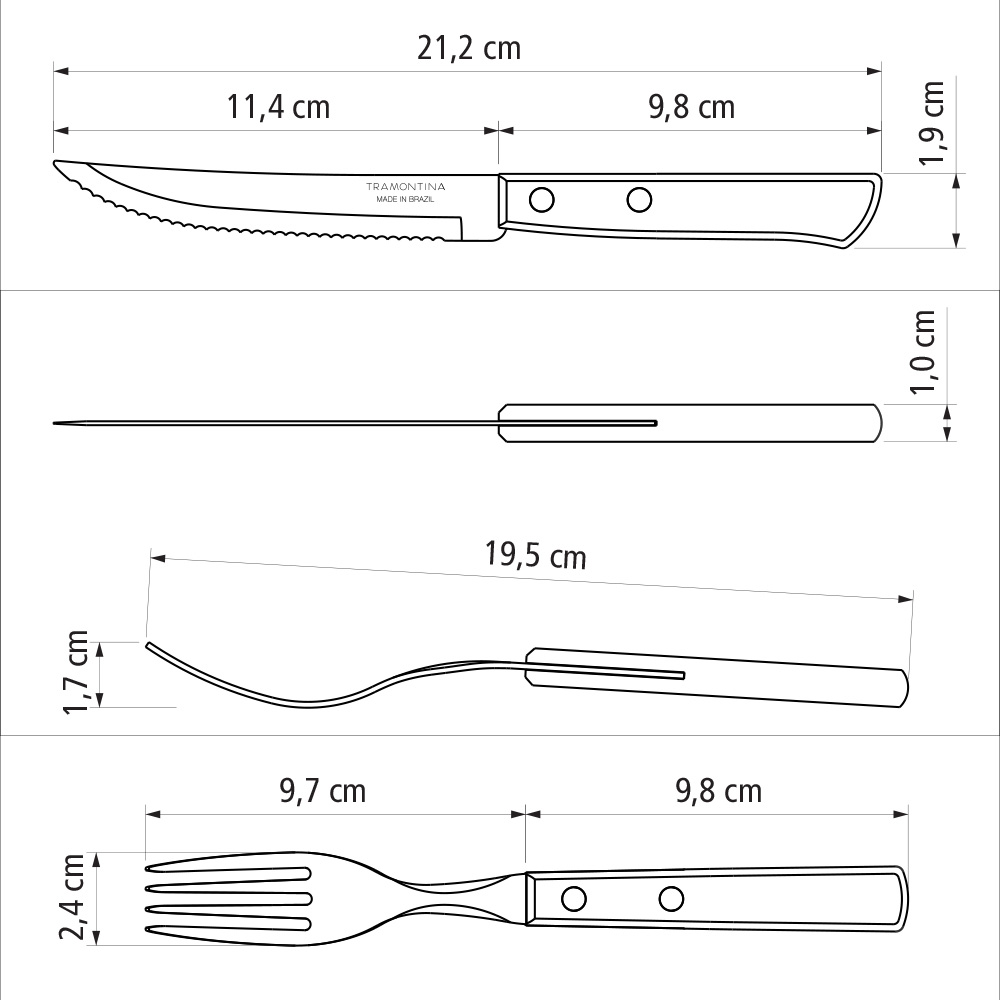 JUEGO PARA ASADO 12 PIEZAS FSC POLYWOOD CASTAÑO TRAMONTINA. JUEGO DE CUBIERTOS PARA ASADO TRAMONTINA, DE ACERO INOXIDABLE CON MANGOS CASTAÑOS, DE MADERA, POLYWOOD, 12 PIEZAS. LÁMINAS DE ACERO INOXIDABLE ALTAMENTE DURABLES. LOS MANGOS DE MADERA TRATADA SON RESISTENTES A IMPACTOS Y ALTAS TEMPERATURAS ANTES DEL PRIMER USO, LAVE BIEN LAS PIEZAS Y SÉQUELAS. PARA MAYOR DURABILIDAD DE LOS CUBIERTOS, SE RECOMIENDA SECARLOS BIEN ANTES DE GUARDARLOS, INCLUSO DESPUÉS DE HABER SIDO LAVADOS EN LAVAVAJILLAS. INCLUYE: 6 TENEDORES DE MESA Y 6 CUCHILLOS DE ASADO 5″
