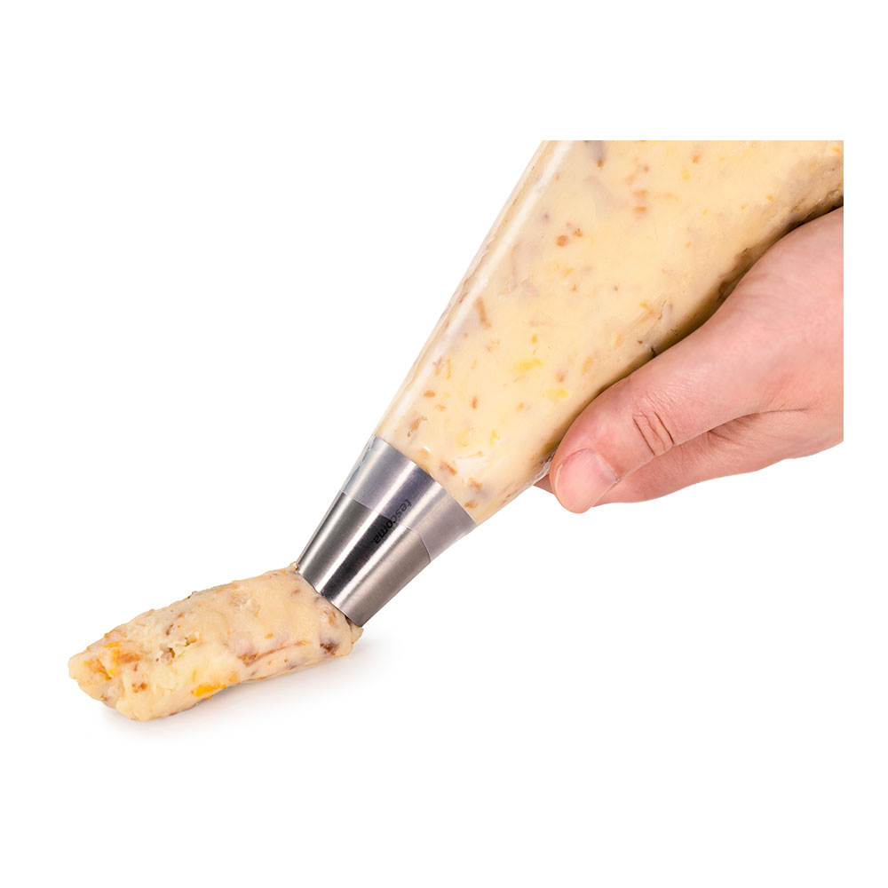 KIT CROQUETAS GRANDCHEF, 10 BOLSAS, 2 BOQUILLAS. EXCELENTE PARA PREPARAR CROQUETAS Y MERENGUES, ADECUADO TAMBIÉN PARA DECORAR Y RELLENAR ALIMENTOS. LAS BOQUILLAS DE ACERO INOXIDABLE DE ALTA CALIDAD SON APTAS PARA LAVAVAJILLAS, LAS BOLSAS ESTÁN FABRICADAS DE PLÁSTICO RESISTENTE. UTILIZAR BOLSA PASTELERA DELÍCIA 50 CM, 10 PZS (CÓDIGO 630469) COMO REPUESTO DE BOLSAS. RECETAS PARA CROQUETAS Y MERENGUES INCLUIDAS. GARANTÍA DE 3 AÑOS. TESCOMA