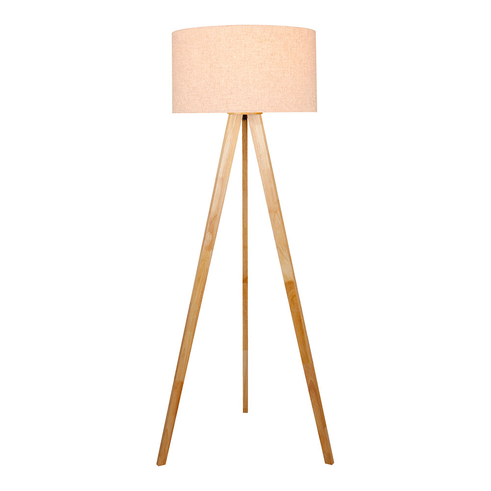 LÁMPARA DE PIE E27 MADERA, HIERRO Y TELA EDM