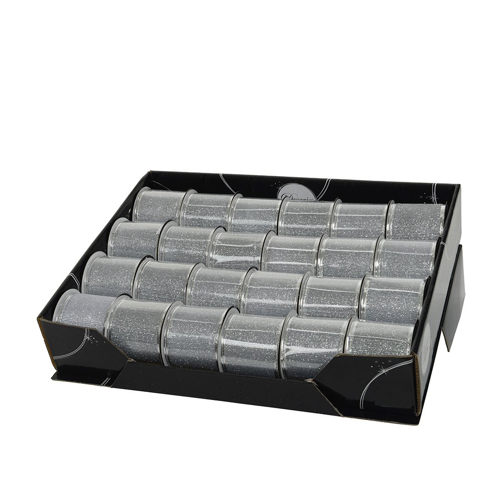 LAZO CON PURPURINA PLATA 6,3x270cm. EXPOSITOR 24 unid.