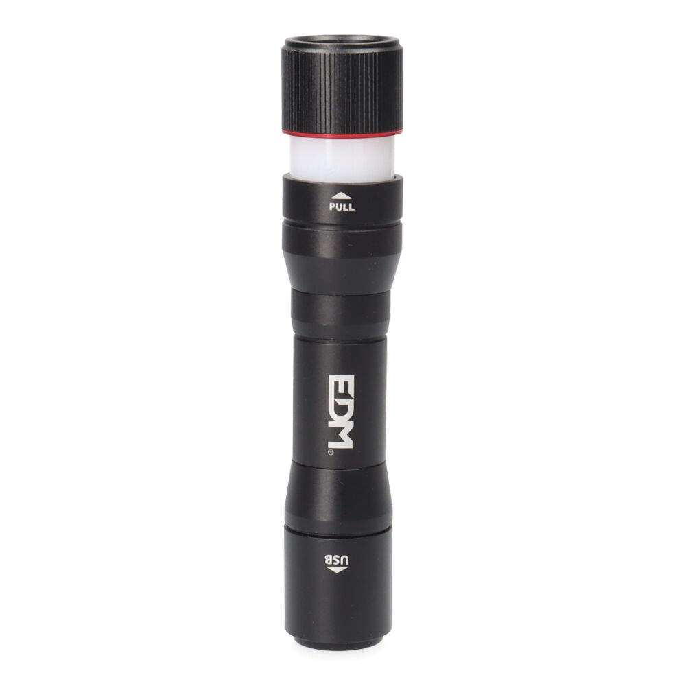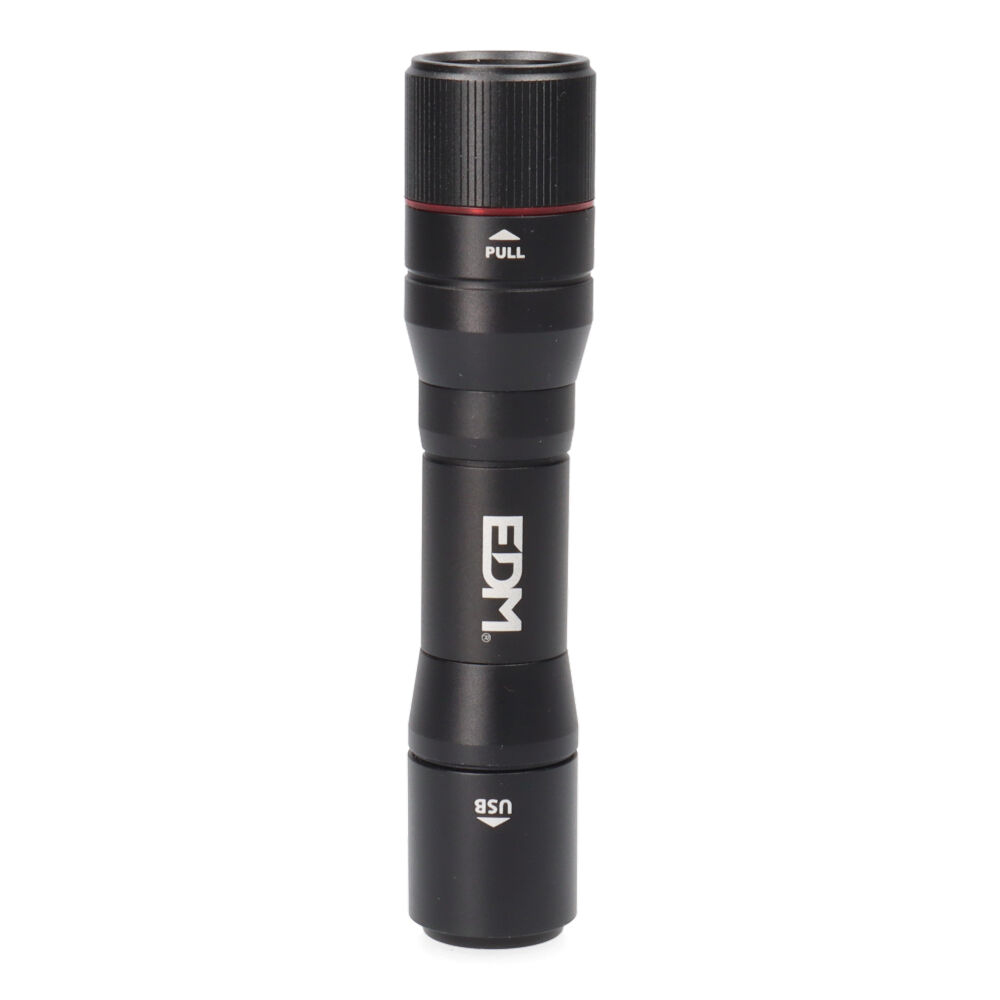 LINTERNA DE 1 LED RECARGABLE 20W 8500K. CUERPO DE ALUMINIO. CON FUNCION POWER BANK, HASTA 7h DE AUTONOMIA, CON BATERIA RECARBABLE 3,7V 2000mAh.CARGA DE 4,5 HORAS. 3 MODOS ILUMINACION: 1800lm, 450lm Y FUNCION FLASH. FUNCION TELESCOPIO, BASE MAGNETICA, IP44, RESISTENCIA A SALPICADURAS.TAMAÑO: Ø3×14,4cm. INCLUYE CABLE DE CARGA TIPO C.