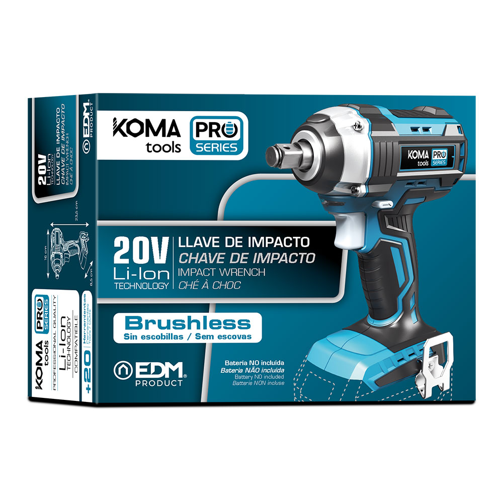 LLAVE DE IMPACTO 20V BRUSHLESS (SIN BATERÍA NI CARGADOR) 16×23,5cm KOMA TOOLS