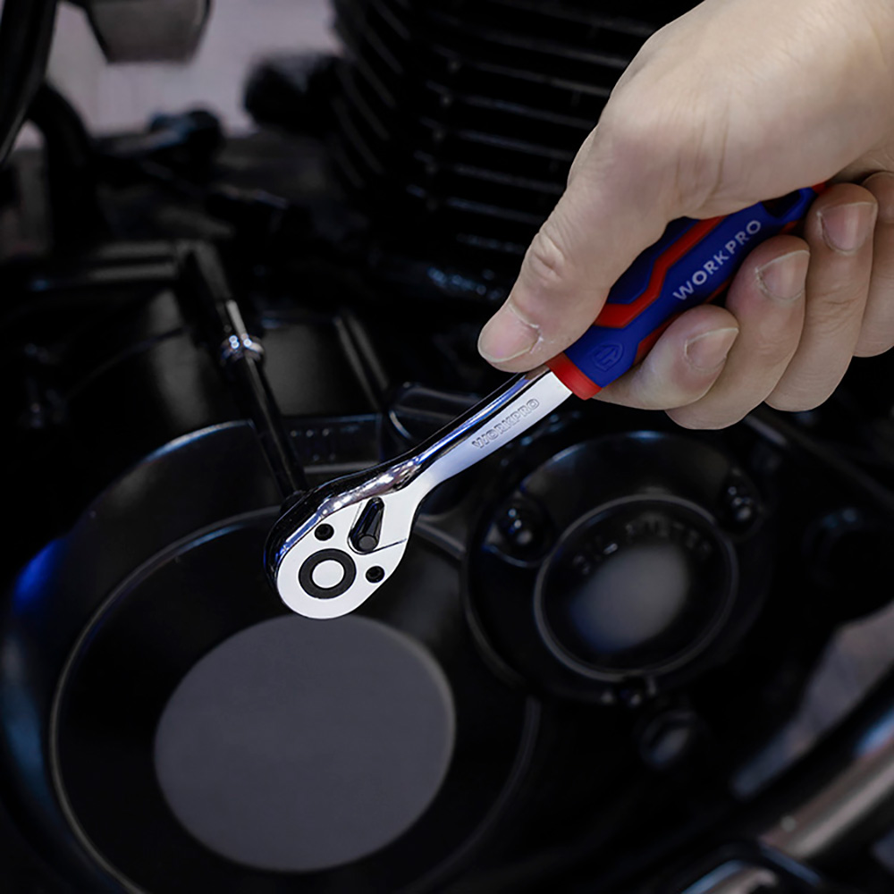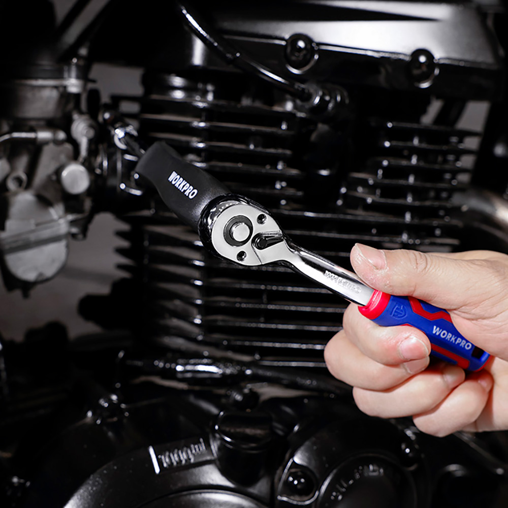 JUEGO DE 46 PIEZAS DE LLAVES DE VASO DE 1/4 DR,. CONTENIDO DEL CONJUNTO:. 1 PC. CARRACA 1/4″, 72 DIENTES. 1 PIEZA. MANGO GIRATORIO DE 1/4″. 1 PC. ADADPTADOR UNIVERSAL DE 1/4″. 1 UD. ADAPTADOR DE PUNTA. 1 UD. MANGO DESLIZANTE EN FORMA DE T DE 110 MM. 1 UD. BARRA DE EXTENSIÓN FLEXIBLE. 2 PIEZAS. BARRA DE EXTENSIÓN DE 2″,4″. 3 PIEZAS: LLAVE ALLEN: 1. 5,2,2. 5 13 VASOS DE 1/4″: 4, 4,5, 5, 5,5, 6, 7, 8, 9, 10, 11, 12, 13, 14 MM. 21 VASOS DE PUNTAS DE ACERO DE ALEACIÓN S2: PH1, PH2, PH3, PZ1, PZ2, PZ3; H3, H4, H5, H6, H7, H8;. SL4 SL5. 5 SL7;T10 T15 T20 T25 T30 T40″. WORKPRO