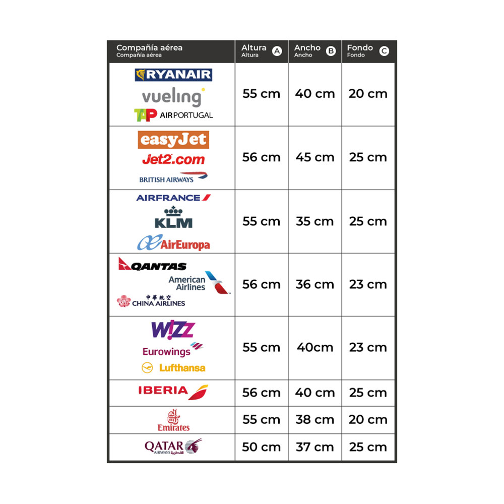 CAPACIDAD 30L/10KG. APTA TODAS LAS AEROLINEAS MATERIAL ABS TEXTURIZADO IMPERMEABLE PROTECTORES LATERALES 4 RUEDAS DOBLES 360° CANDADO COMBINACION LATERAL INTERIOR COMPARTIMENTADO.