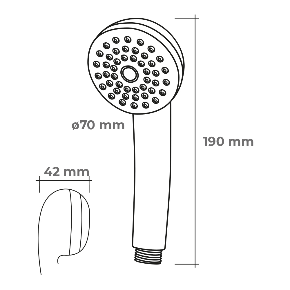 MANGO DE DUCHA ANTICALCAREO. 1 FUNCION. DIMENSIONES: Ø7×4,2x19cm. COLOR BLANCO. MATERIAL: ABS. EDM