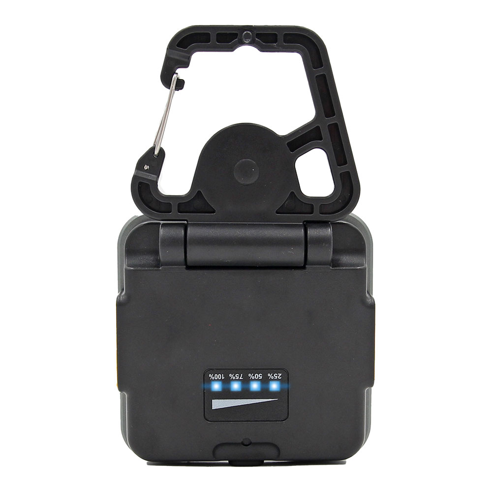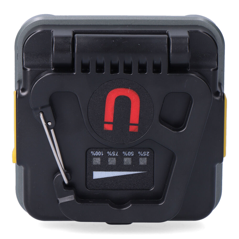 MINI FOCO LED DE TRABAJO 1.000Lm 15W COB. 3 MODOS:1000lm/350lm/FLASH, 6800K, BATERÍA 2.000mAH DE LITIO INCLUIDA, INDICADOR DE CARGA, CABLE USB TIPO C INCLUIDO, CON IMÁN, GANCHO Y ASA, CON BASE BASCULANTE 180°, DISPONE DE ROSCA 1/4-20UNC PARA TRÍPODE. HASTA 6H DE AUTONOMÍA, CARGA DE 4H, IP44,DIMENSIONES DEL PRODUCTO: 8,1×8,1×4,6cm.