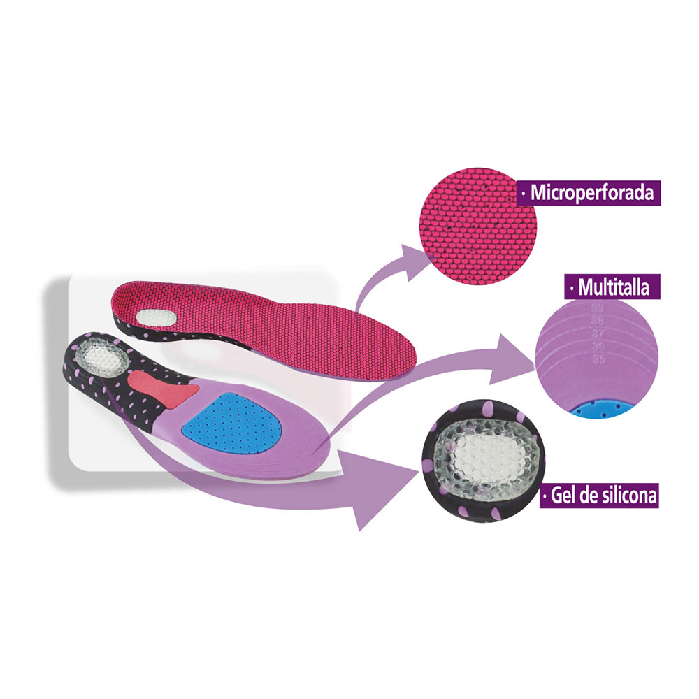 PLANTILLA PARA CALZADO MULTIDEPORTIVA GEL T: 40-46 HIDALGO. MICROPERFORADA.GEL DE SILICONA. TRANSPIRABLES. ABSORBE EL SUDOR, AMORTIGUACIÓN, CONFORT Y ESTABILIDAD. MULTITALLA RECORTABLE, 40-46