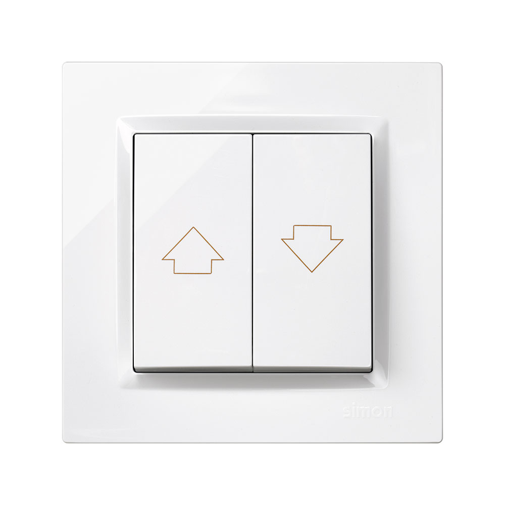 PULSADOR PERSIANAS BLANCO CON MARCO SERIE 10. MATERIAL PLÁSTICO, IP20, 250V, 10A, MEDIDA 8,5 x 3 x 8,5 cm. MEDIDA ENCLAVAMIENTO 2,5cm