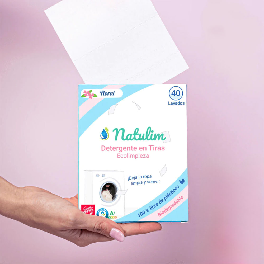 S.OF DETERGENTE EN TIRAS NATULIM FLORAL 40 LAVADOS.BIODEGRADABLE.100% LIBRE DE PLÁSTICOS. DEJA LA ROPA LIMPIA Y SUAVE.