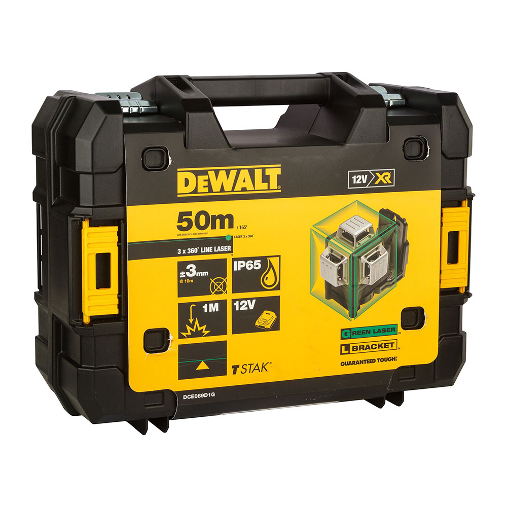 S.OF. NIVEL LÁSER AUTONIVELANTE VERDE DE 3 LÍNEAS 360° XR 12V CON BATERÍA LI-ION 2AH DCE089D1G-QW DEWALT