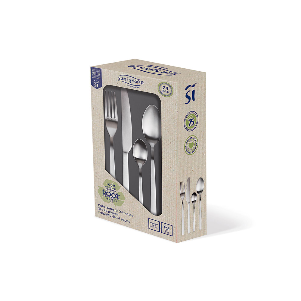 SET 24 unid. CUBERTERIA DE ACERO INOXIDABLE RECICLADO MATE ROOT SG7770 SAN IGNACIO