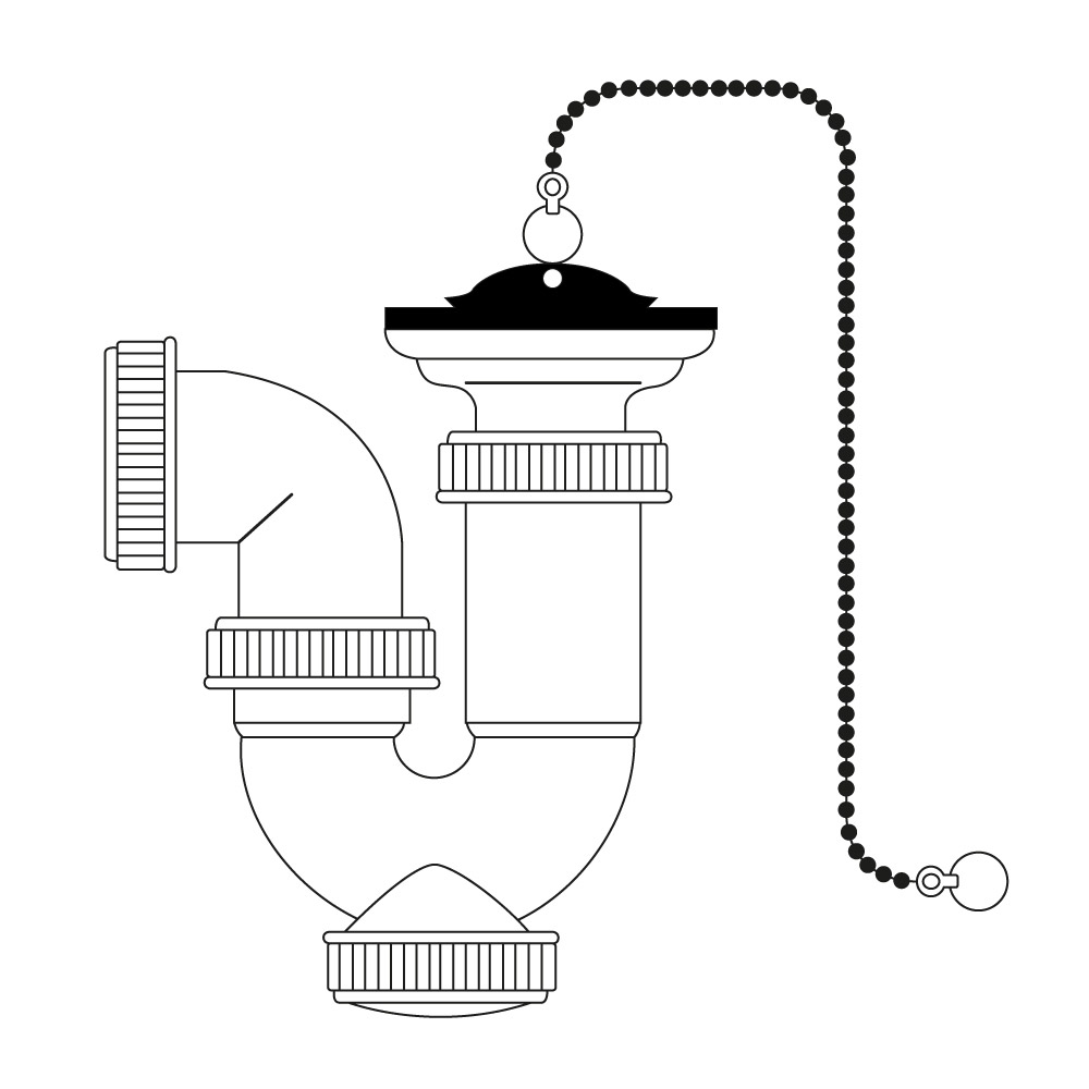 SIFON CURVO EXTENSIBLE LAVABO-FRAGADERA 1″ 1/2 CON CADENA Y TAPON. PLASTICO PVC
