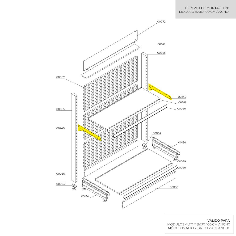 SOPORTE PARA BARRA DE 200mm, CON LA POSIBILIDAD DE PONER LAS BANDEJAS DE 200mm, EN DOS POSICIONES, 250x3x77mm RAL 7015 BASICS