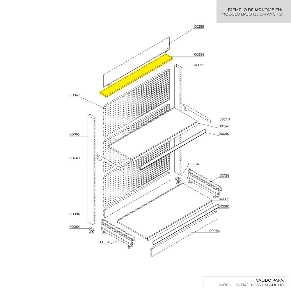 TAPA CENTRAL GRIS EXPOSITOR 1330x95x16mm RAL 7015. NECESARIA PARA LA COLOCACIÓN DE LA REF.00256. NORMALMENTE USADO EN EL MONTAJE DE MÓDULOS BAJOS. BASICS