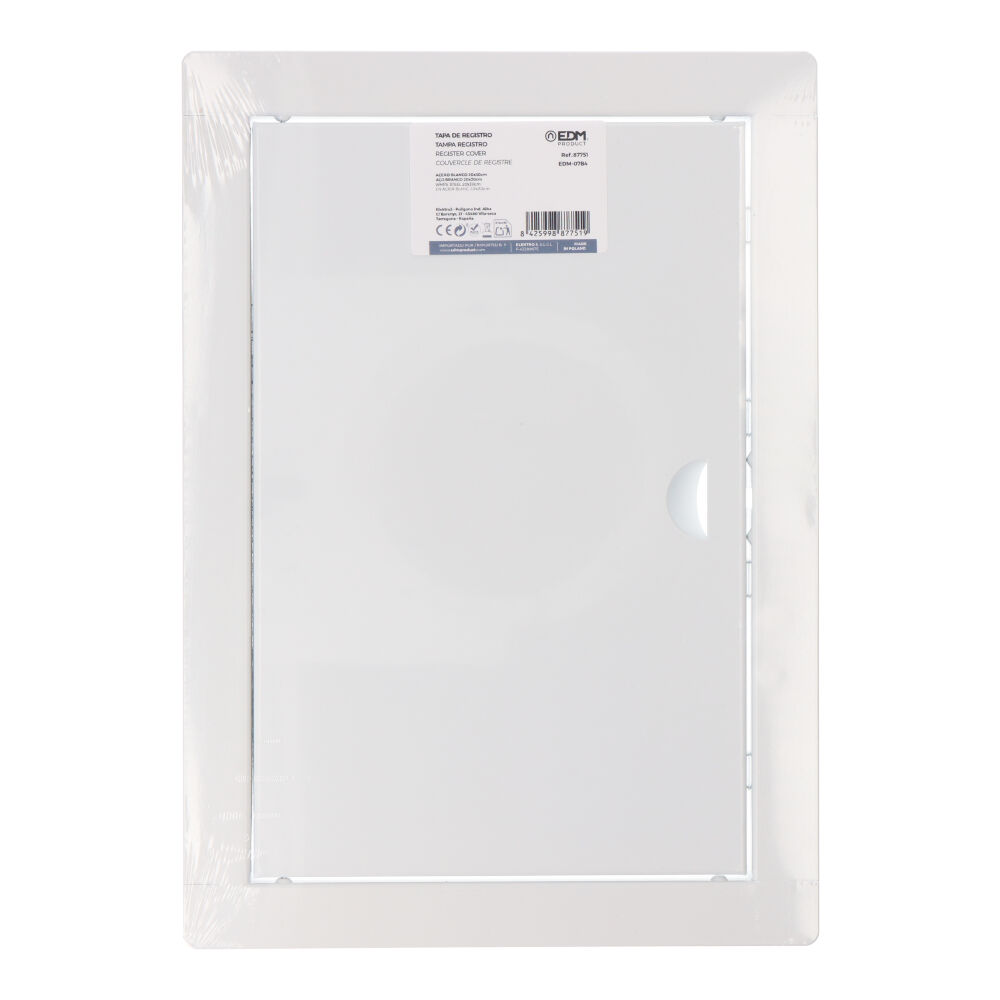 TAPA DE REGISTRO RECTANGULAR EMPOTRABLE DE ACERO , MEDIDA ENCLAVAMIENTO 20x30cm MEDIDA 24,5×34,5 BLANCO