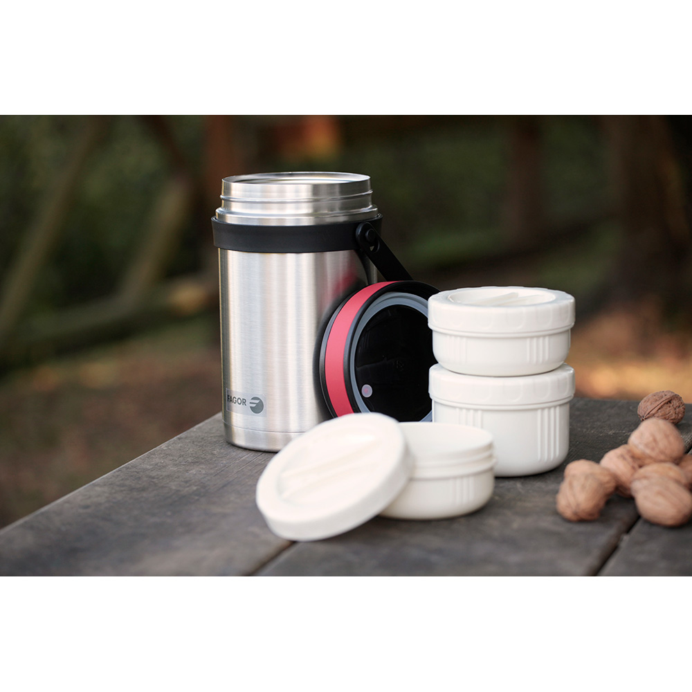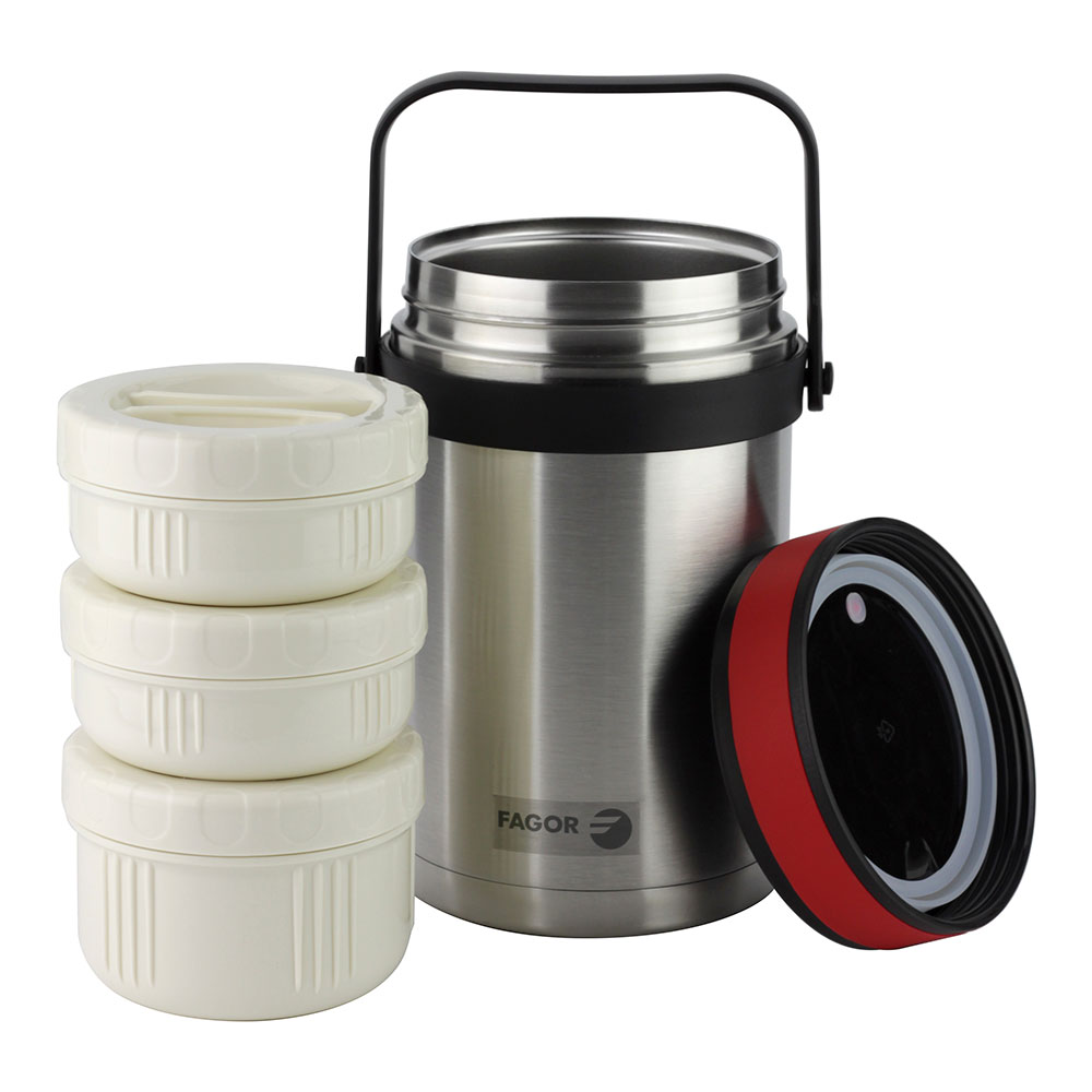 TERMO PORTA ALIMENTOS BON APPETIT. TERMO PORTA ALIMENTOS, CAPACIDAD 1,5L, FABRICADO EN ACERO INOXIDABLE, DOBLE PARED DE AISLAMIENTO, ASA ABATIBLE, VÁLCULA DESPRESURIZADORA, CONTIENE RECIPIENTES HERMÉTICOS DE 180 Y 300ml. 81PXFGTEBO5 FAGOR