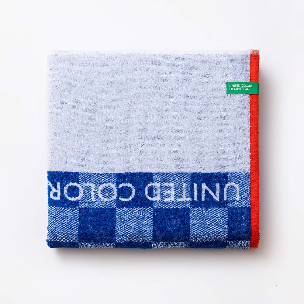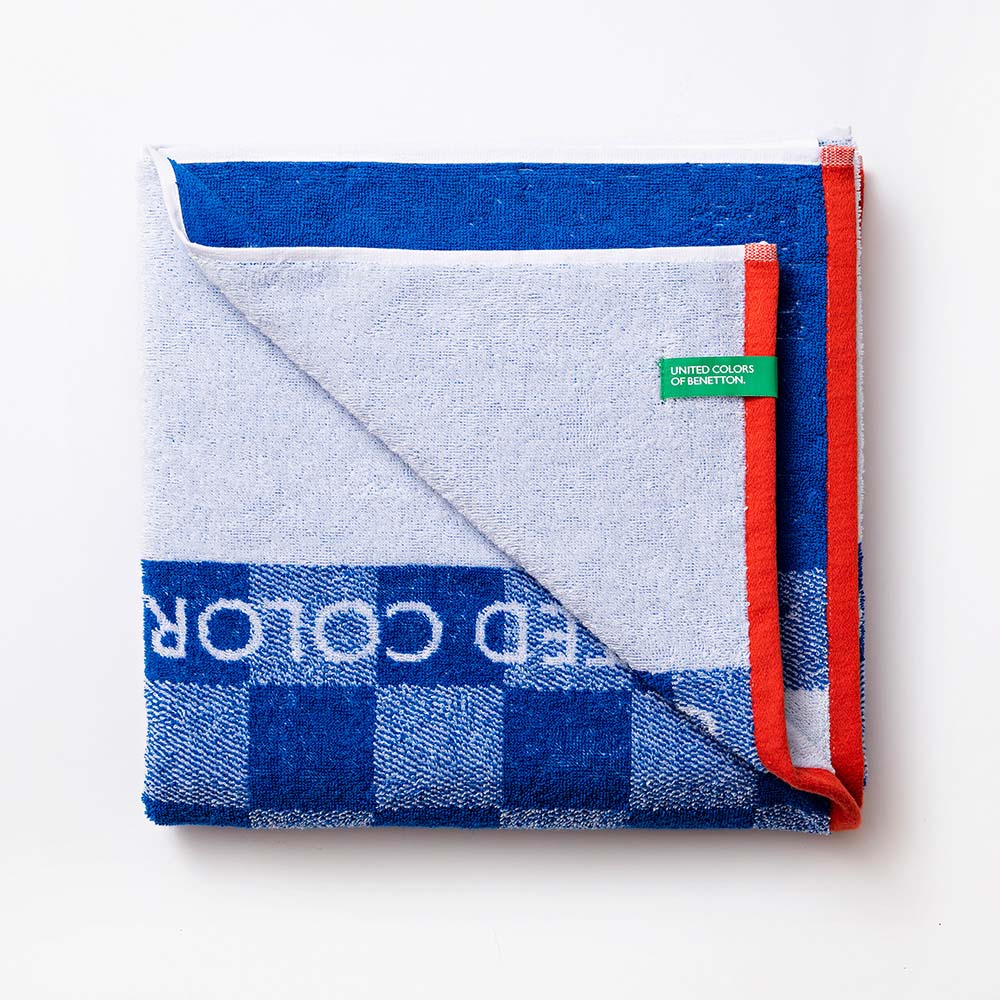TOALLA DE PLAYA DIMENSIONES: 140x70cm (ancho/fondo) 450g/m² 100% ALGODON CUADROS AZUL KIDS BENETTON