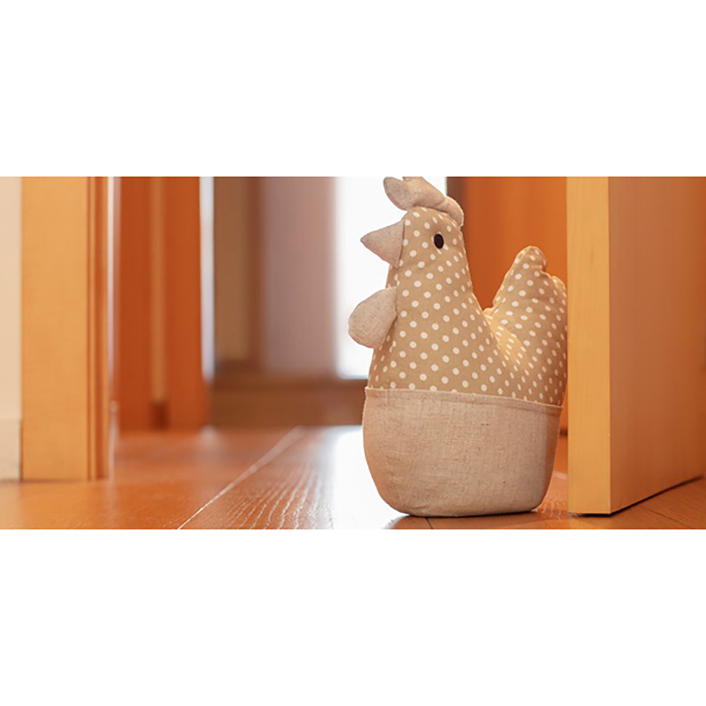 TOPE TEXTIL SUJETAPUERTAS 1kg GALLINA BEIGE. TEJIDO TEXTIL DE POLIÉSTER RELLENADOS DE ALGODÓN SINTÉTICO Y ARENA, MUY ÚTILES Y PRÁCTICOS DE USAR.PERFECTOS PARA PREVENIR PORTAZOS POR CORRIENTES DE AIRE, ADEMÁS DE DESTACAR COMO UN ELEMENTO DECORATIVO EN EL HOGAR. 30x28x10cm. INOFIX