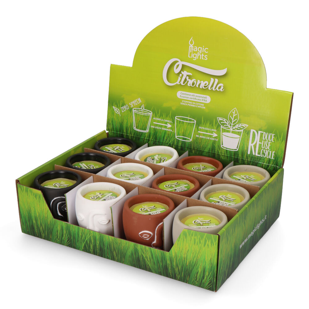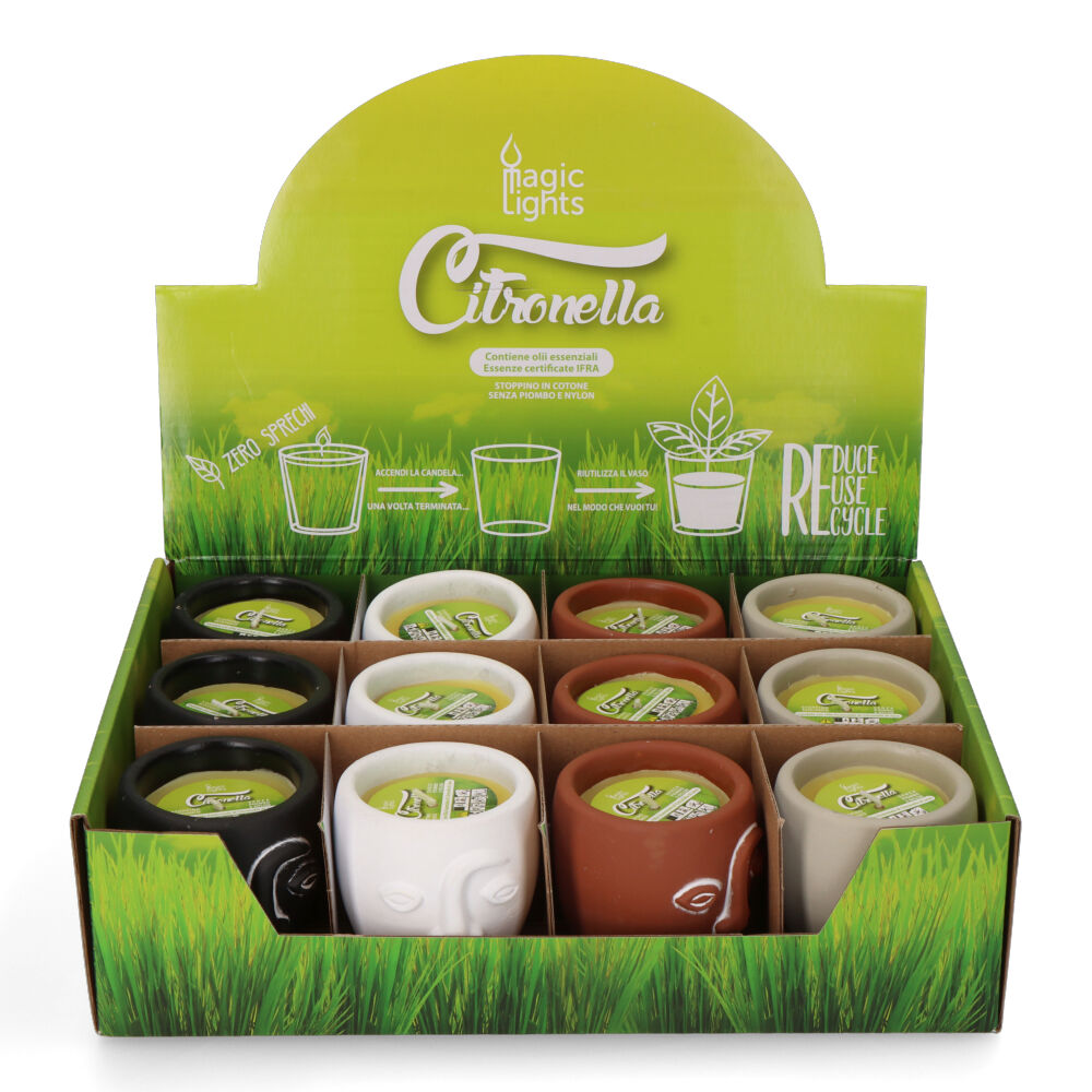 VELA CITRONELA DE TERRACOTA «CARAS» COLORES SURTIDOSDisponibilidad: 135 disponibles