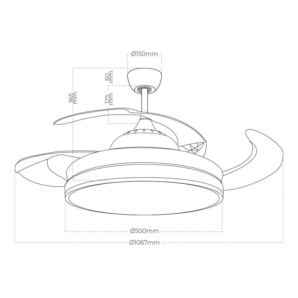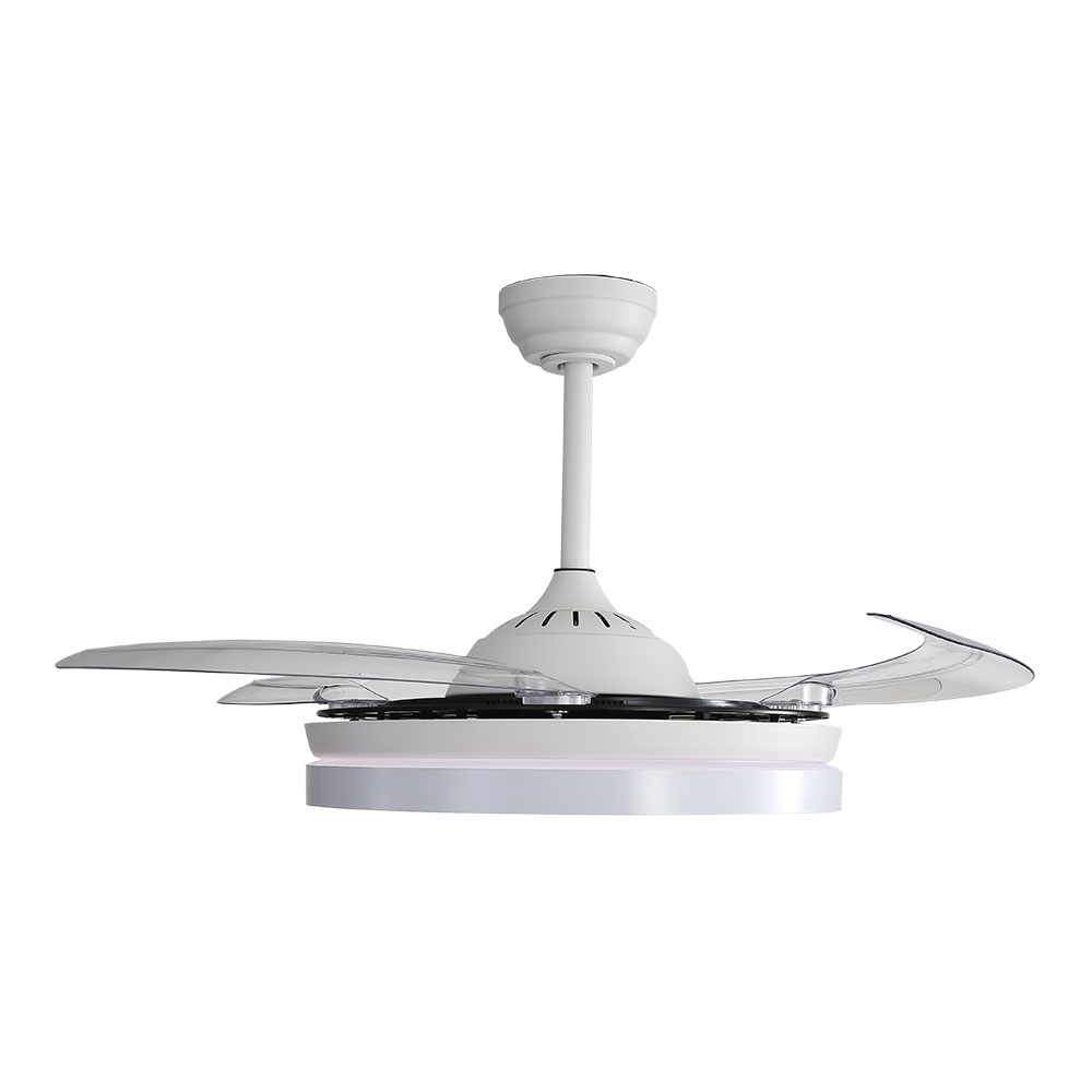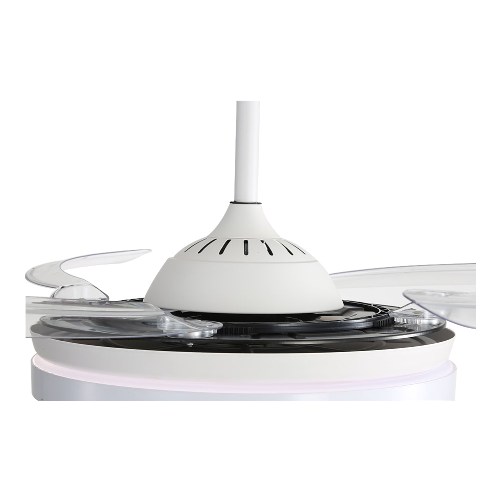 VENTILADOR DE TECHO ASPAS RETRÁCTILES ROSS, 4100 Im, 6 NIVELES DE POTENCIA, Ø107 cm. DC, 45dB. 2 FUNCIONES MODO VERANO ( AIRE DESCENDENTE), MODO INVIERNO (CREA UN FLUJO DE AIRE ASCENDENTE QUE EMPUJA EL AIRE CALIENTE DEL TECHO Y LO HARÁ CIRCULAR HACIA ABAJO). TIENE VARIOS TONOS DE LUZ: LUZ CÁLIDA 3000K, LUZ DÍA 4000K, LUZ FRIA 6500K. MANDO A DISTANCIA , CON LAS SIGUIENTES FUNCIONES: APAGADO AUTOMÁTICO DESPUÉS DE 1h/2h/4h/8h, MODO APAGADO DIRECCIÓN DE ROTACIÓN, LUZ ENCENDIDA / LUZ APAGADA, VIENTO NATURAL(CICLO AUTOMÁTICO 1-6 VELOCIDADES). EDM